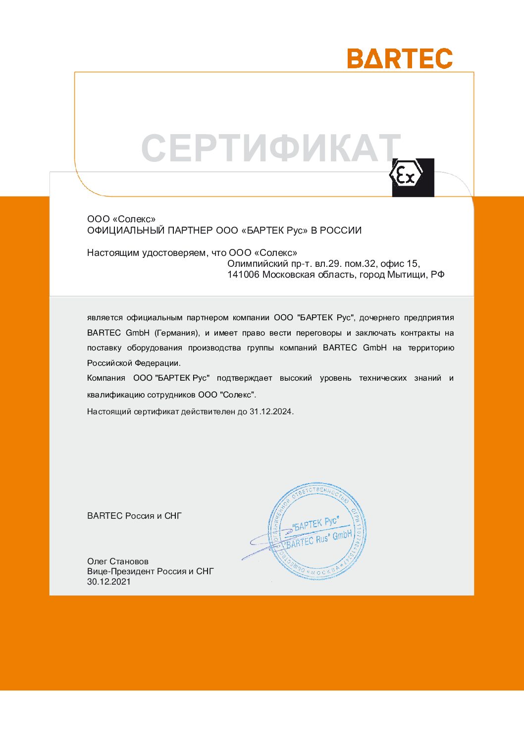 Компания “Солекс” является официальным дистрибьютором ООО “БАРТЕК Рус” – дочернего предприятия BARTEC GmbH.